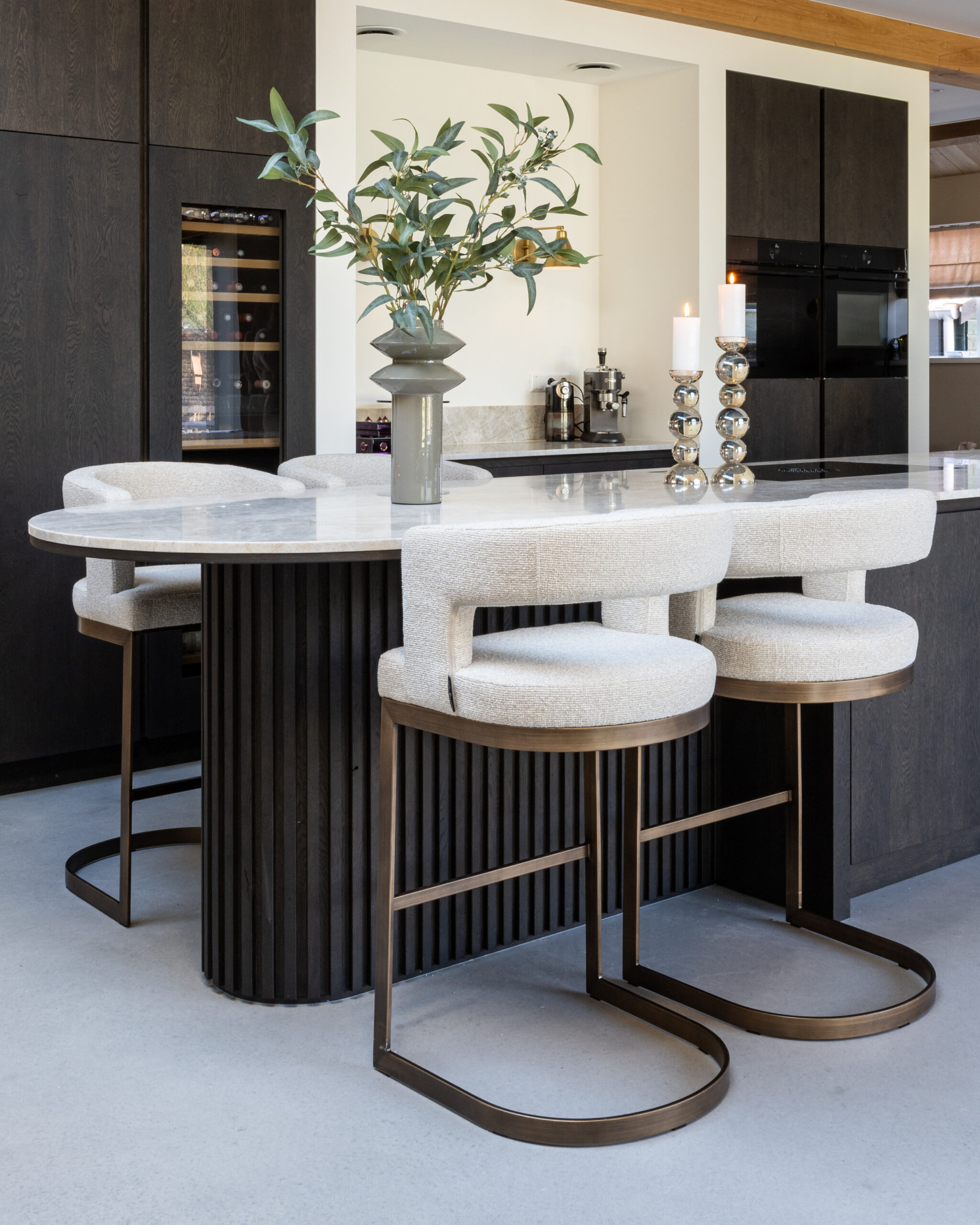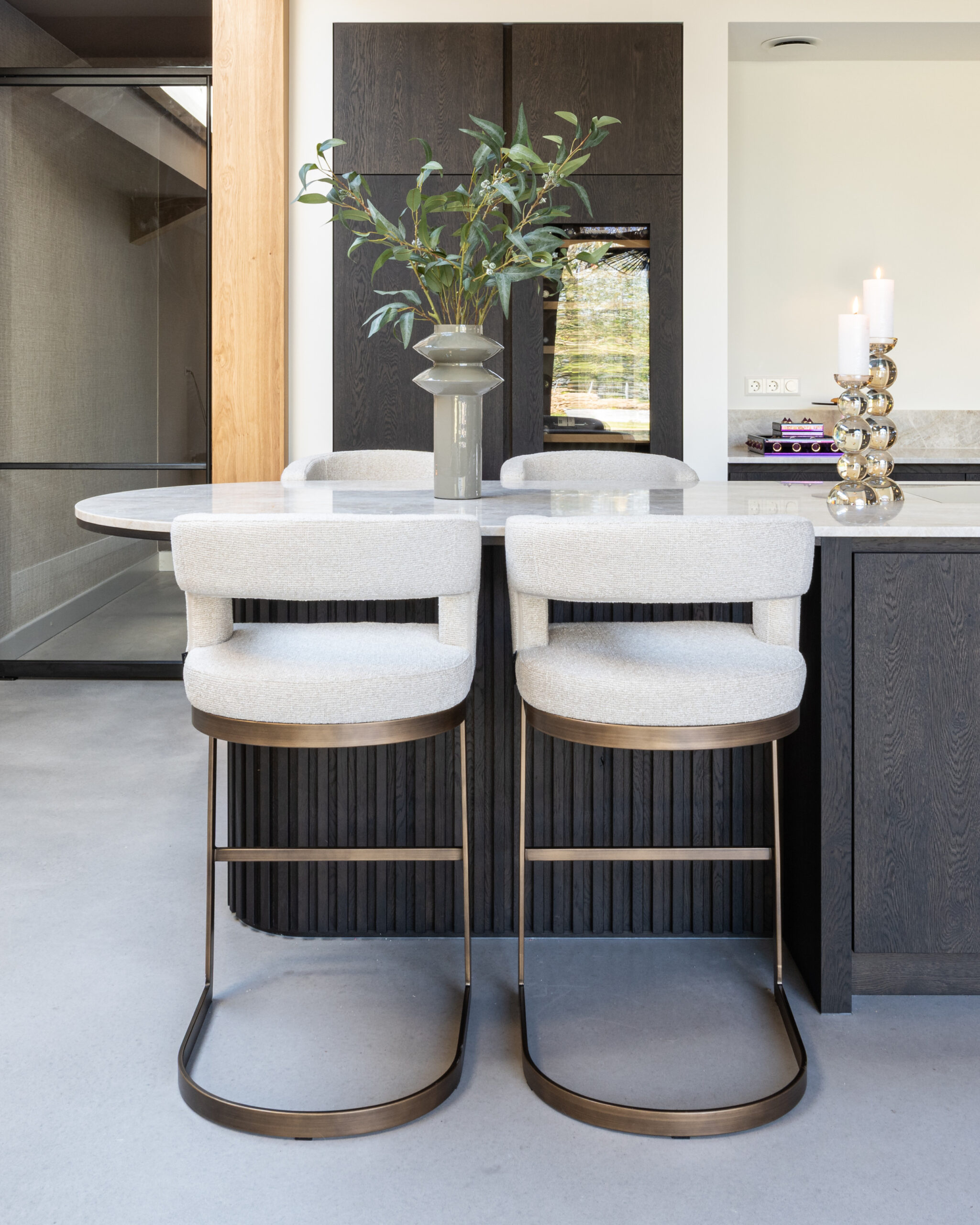 Barstoel Ellis in de prachtige stof biscotti straalt verfijning en warmte uit. Het elegante design en de zachte bekleding maken deze barstoel niet alleen comfortabel, maar ook een stijlvolle toevoeging aan elke keuken of bar. De stevige constructie zorgt voor duurzaamheid en langdurig zitplezier.