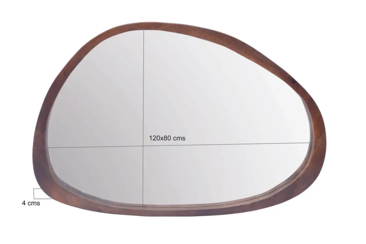 Ervaar tijdloze charme met de Jaira organische spiegel van Brix. Zijn organische vorm en warme walnoot kleur geven een authentieke uitstraling die perfect past bij hedendaagse woontrends. Met een subtiel ontworpen 4 cm dikke omlijsting straalt de Jaira speelsheid en natuurlijk karakter uit in elke ruimte.