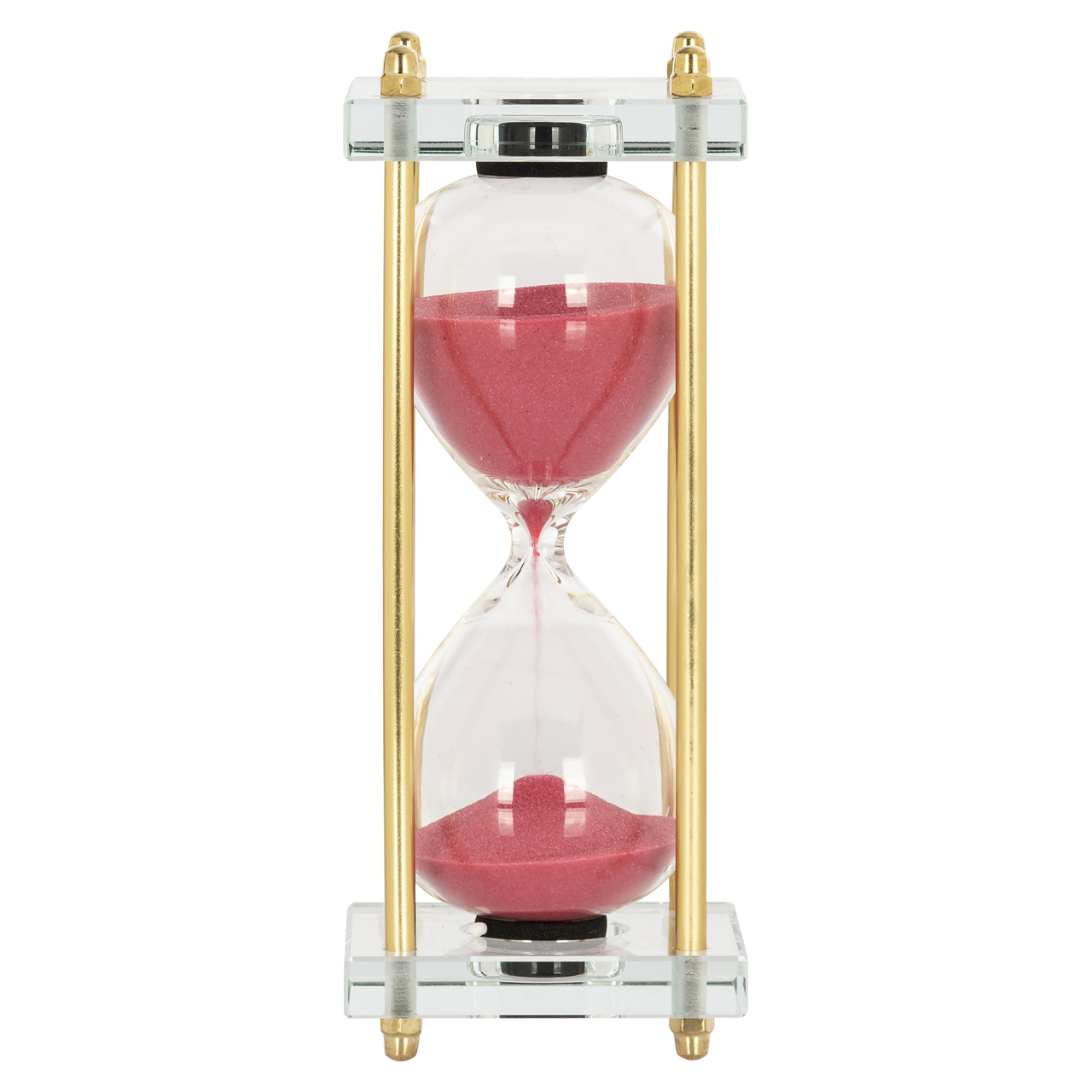 De zandloper Ziva combineert de eenvoud van glas met de verfijning van gouden details. Het heldere glas stelt gebruikers in staat om het zand in real-time te zien bewegen, wat een kalmerend effect kan hebben. De toevoeging van gouden details voegt een vleugje luxe en elegantie toe, waardoor het een prachtig decorstuk is voor elk interieur. Perfect om de tijd op een stijlvolle manier bij te houden of gewoon als een elegante decoratie op een boekenplank of bureau te plaatsen.