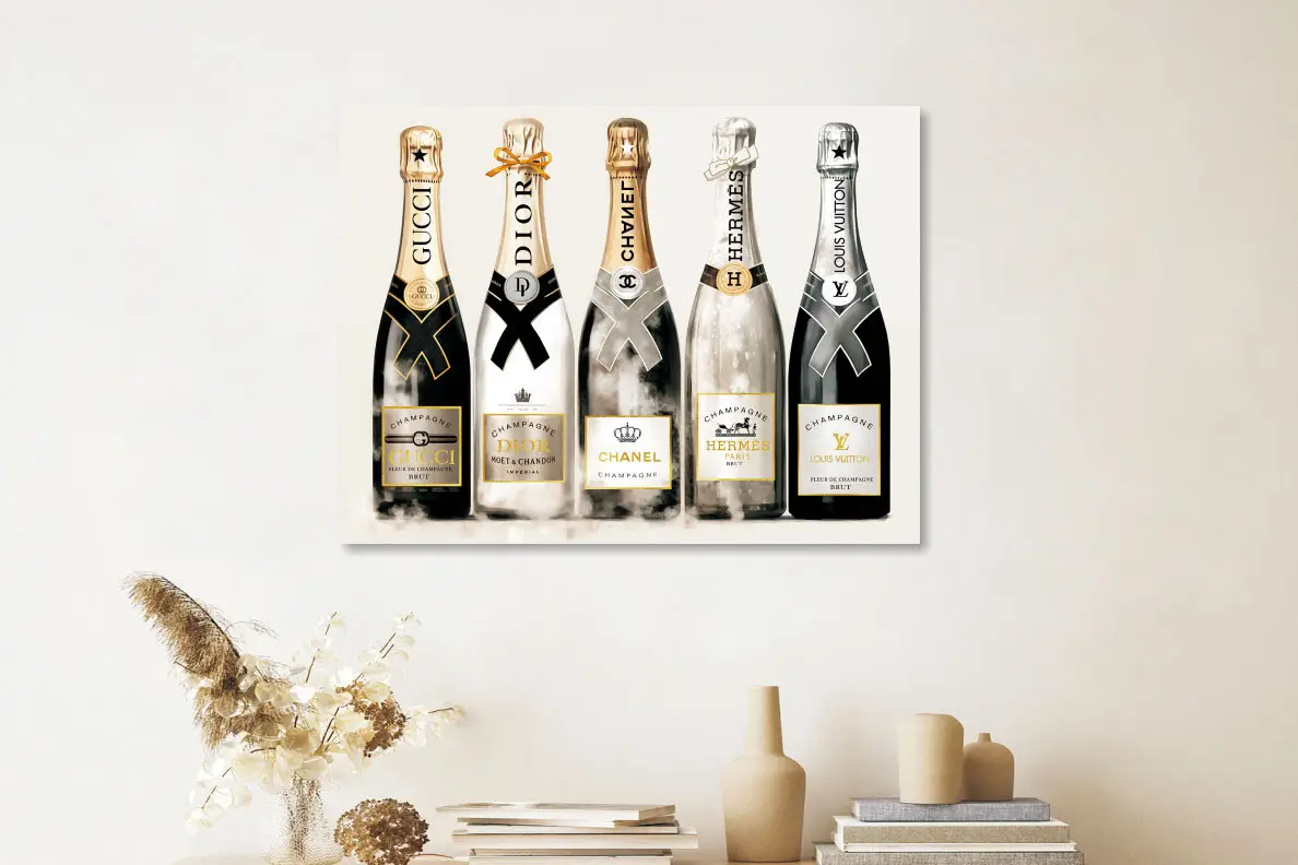 Glasschilderij 120x80cm Flessen champagne Afmetingen: 80x120cm View: Fashion