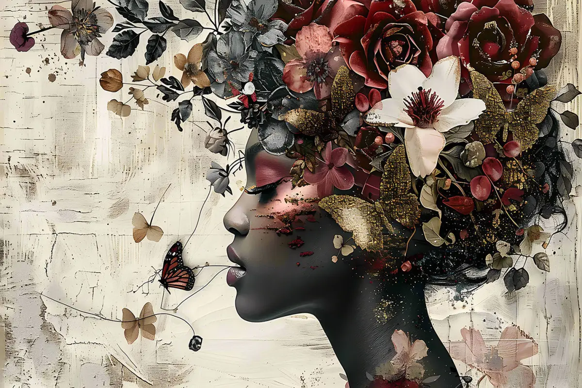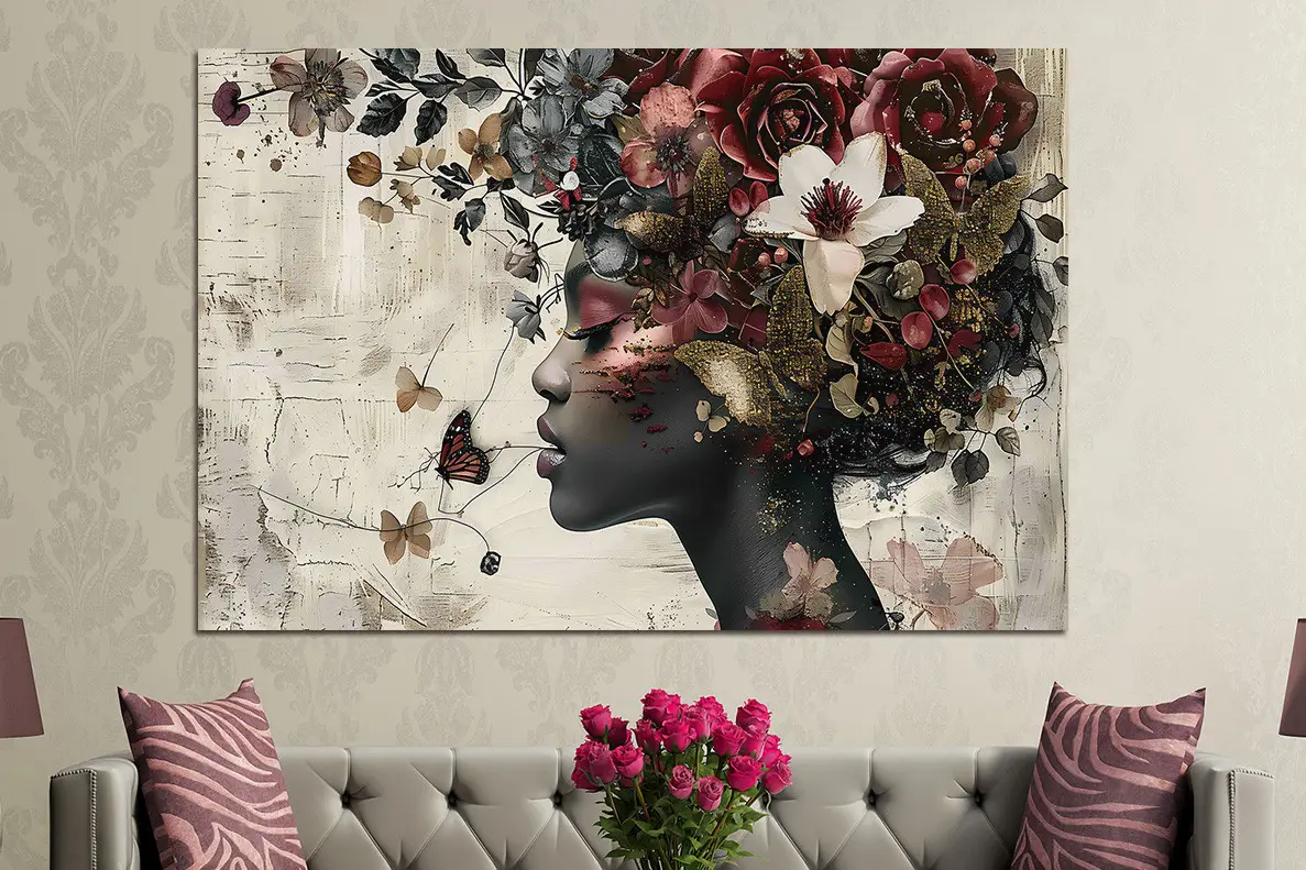 Glasschilderij 120x80cm Vrouw met bloemen rechts