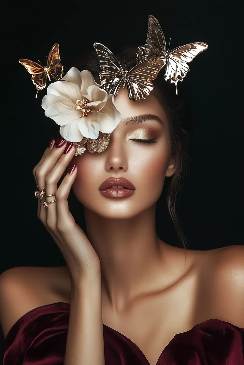 Glasschilderij 80x120cm Fashion dame met vlinders Afmetingen: 80x120cm View: Figuratief