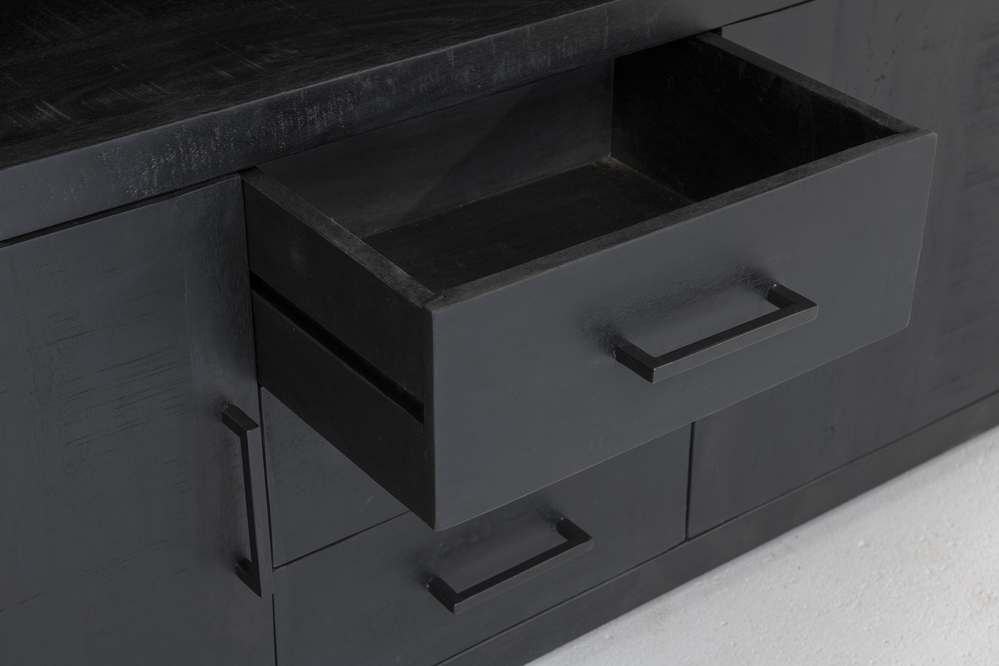 Ontdek deze kast uit de Jaxx Collectie van Livingfurn, expressief in ontwerp en krachtig in zwart. Gemaakt van mangohout met een zwarte afwerking, onderscheidt Jaxx zich door zijn strakke vorm en stijlvolle uitstraling. Prachtig te integreren in elk interieur, vooral in combinatie met natuurlijke kleuren en materialen. Combineer moeiteloos met de Kala Collectie voor een complete look.