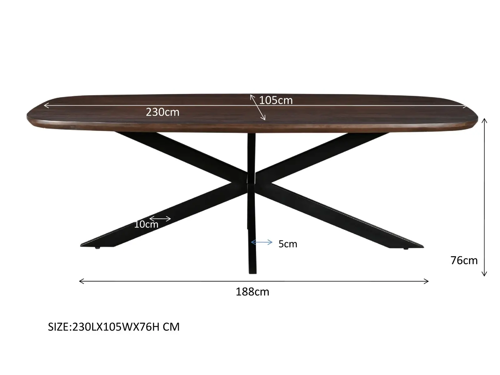Afmetingen 230 × 105 × 76 cm
