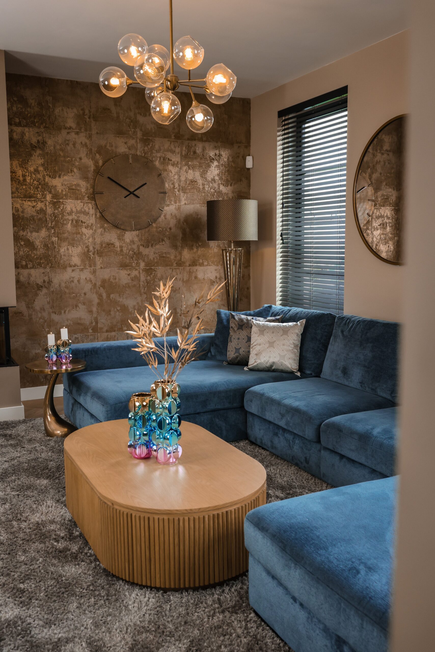 Deze stijlvolle klok, vervaardigd uit goudkleurig aluminium, combineert functionaliteit met elegantie. Het schitterende gouden oppervlak van de Zane klok reflecteert licht op een betoverende manier, waardoor de klok niet alleen een praktische, maar ook een decoratieve functie heeft. De strakke lijnen en het minimalistische ontwerp maken het een tijdloos stuk dat moeiteloos in verschillende interieurstijlen past.
