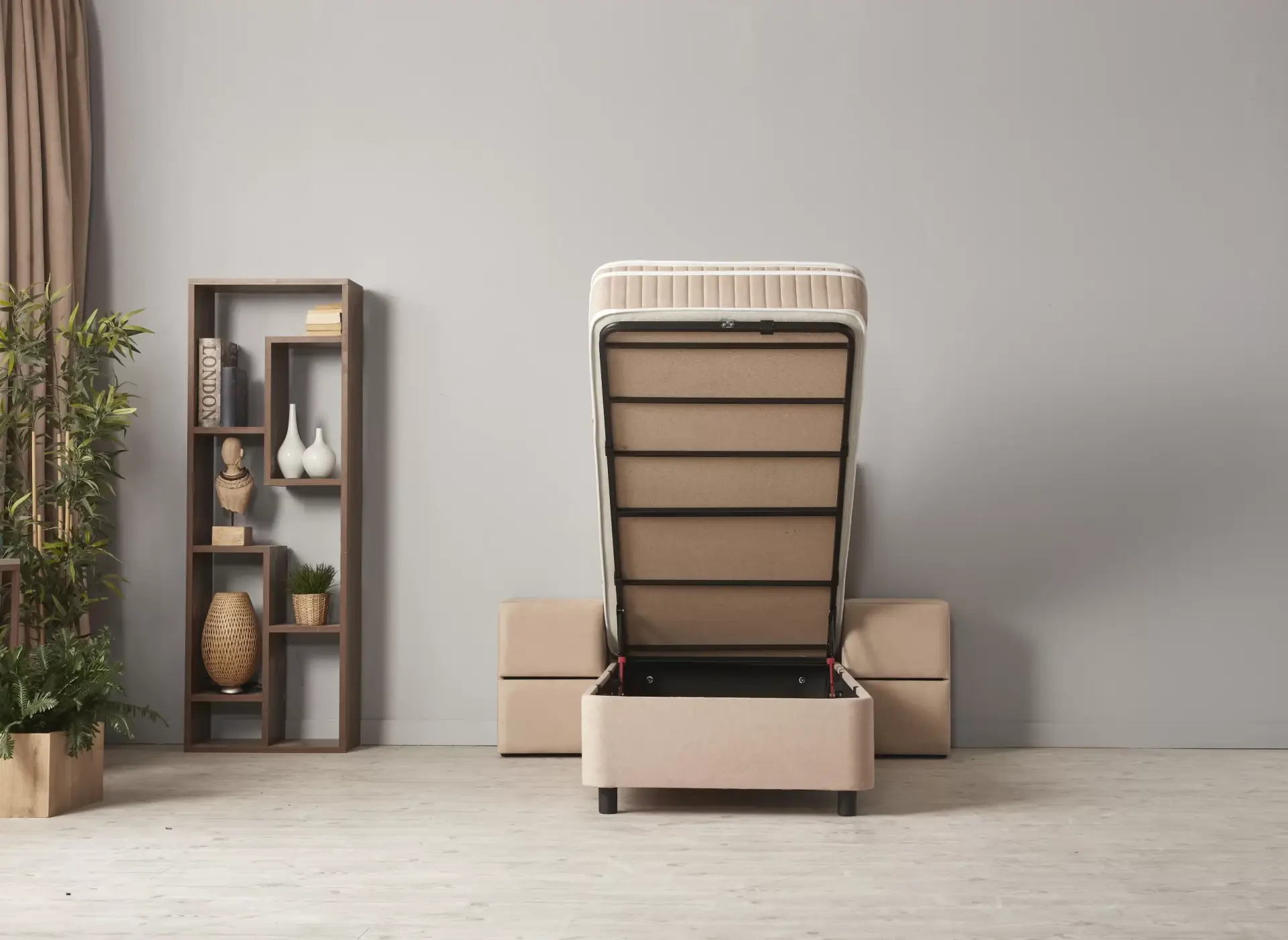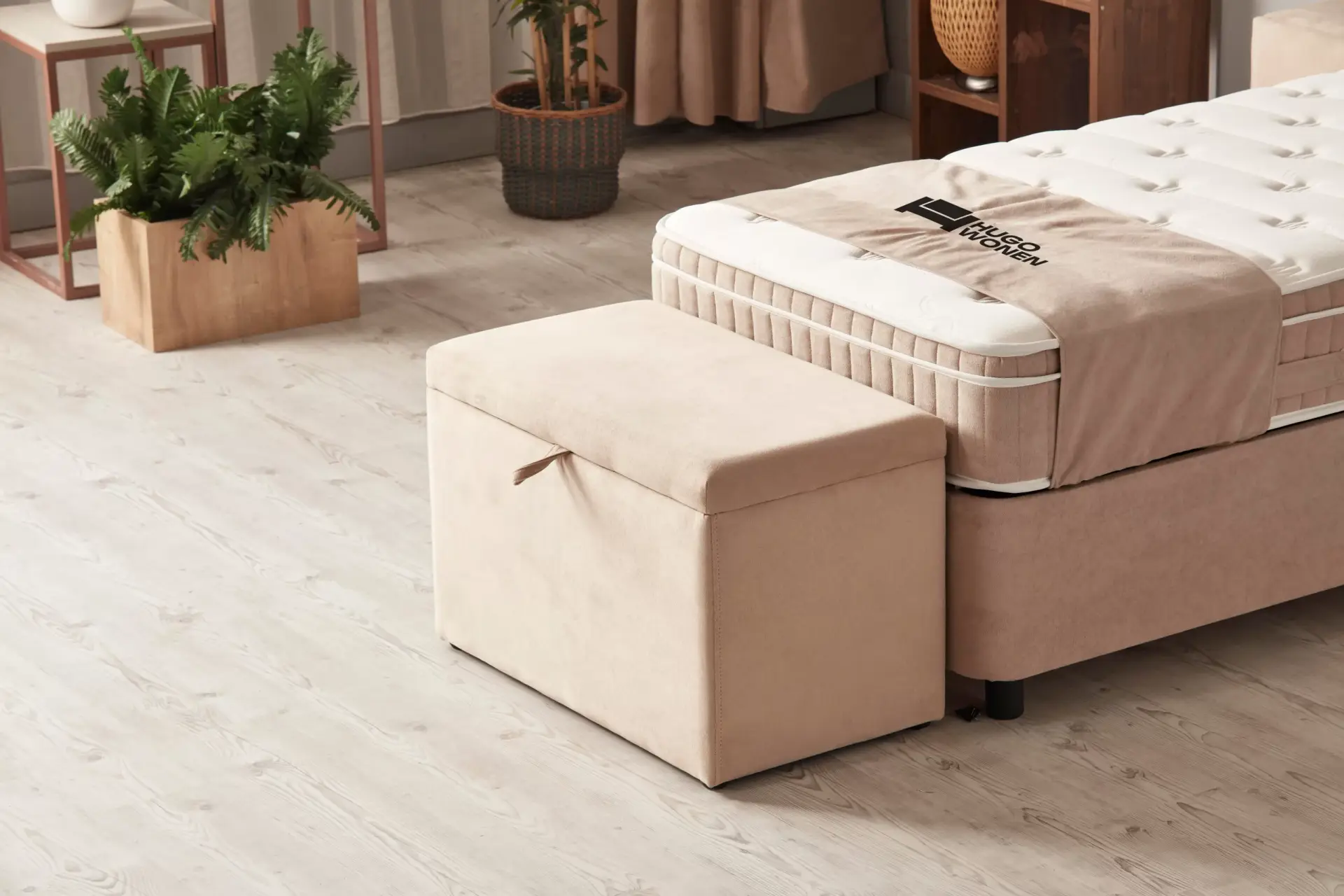 Opbergruimte: Onder het gehele matrasoppervlak bevindt zich een ruime opbergbox met metalen frame, ideaal voor het opbergen van beddengoed, kleding of andere persoonlijke items.