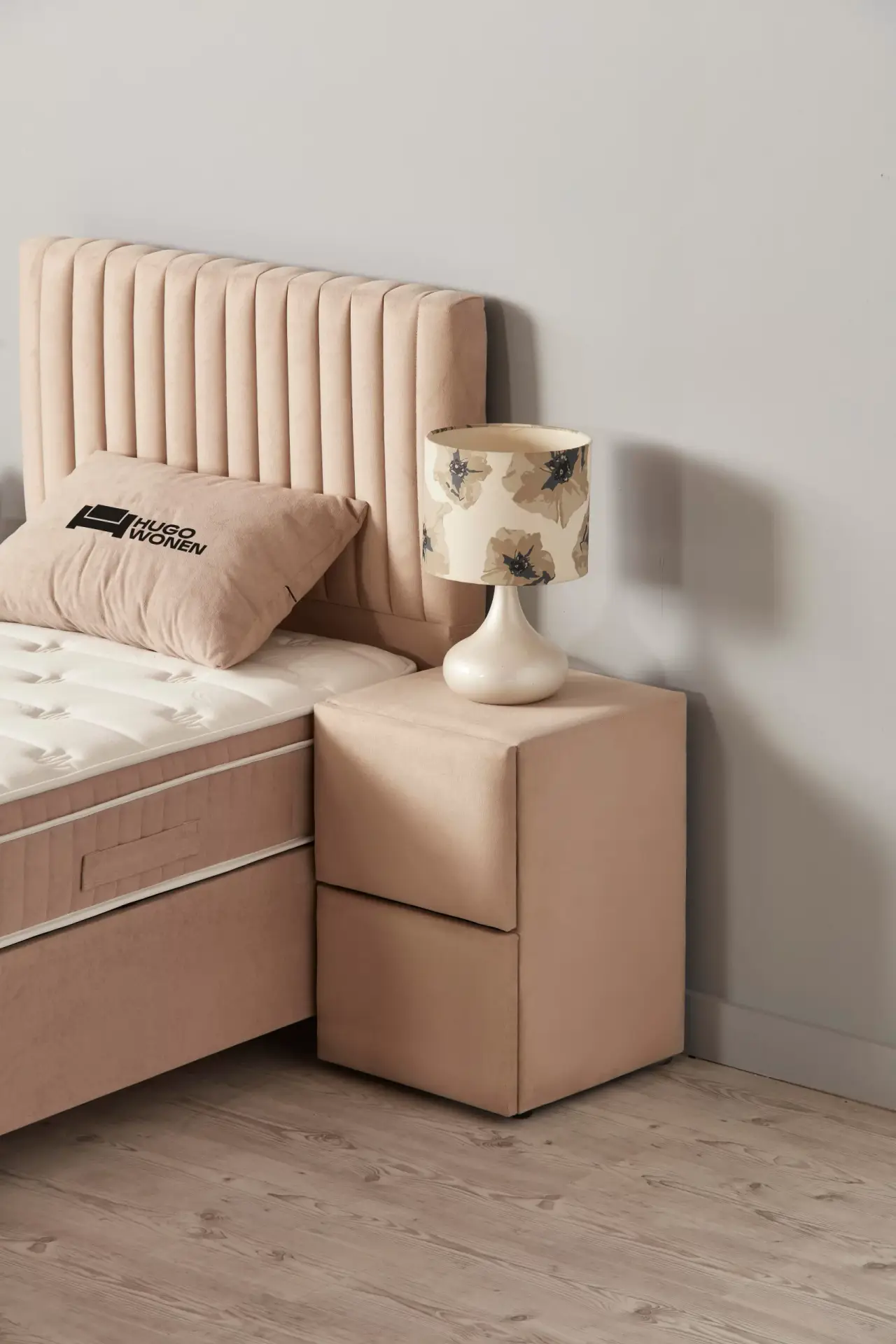Hoofdbord: Voorzien van een design hoofdbord in luxe stof, wat zorgt voor een elegante uitstraling.