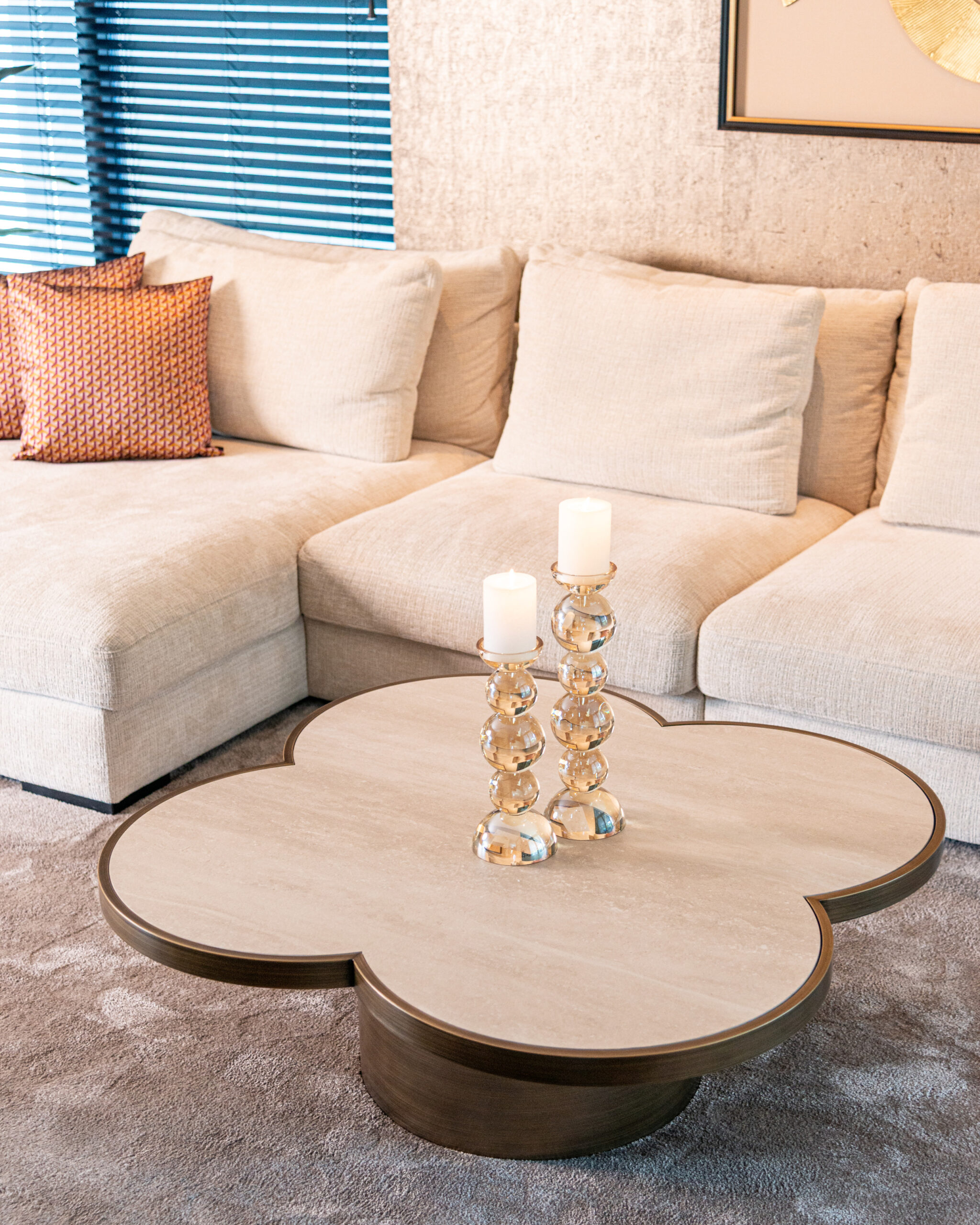 Een stijlvolle en verfijnde salontafel die moeiteloos een moderne en elegante sfeer toevoegt aan je interieur. Met zijn strakke lijnen en tijdloze design is Coffee Table Clover een echte blikvanger die perfect past in diverse woonstijlen. Een combinatie van esthetiek en functionaliteit die elke ruimte naar een hoger niveau tilt.