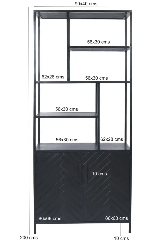 Ontdek de charme van de kasten uit de York Collectie van Livingfurn, een stijlvolle eyecatcher voor jouw woonkamer. Het zwarte mangohout vormt een prachtig contrast met het visgraatpatroon op de deuren van het tv-meubel. Het frame, gemaakt van gecoat staal, voegt een extra vleugje chic toe aan de York meubelen, waardoor ze een verfijnde toevoeging zijn aan je interieur.